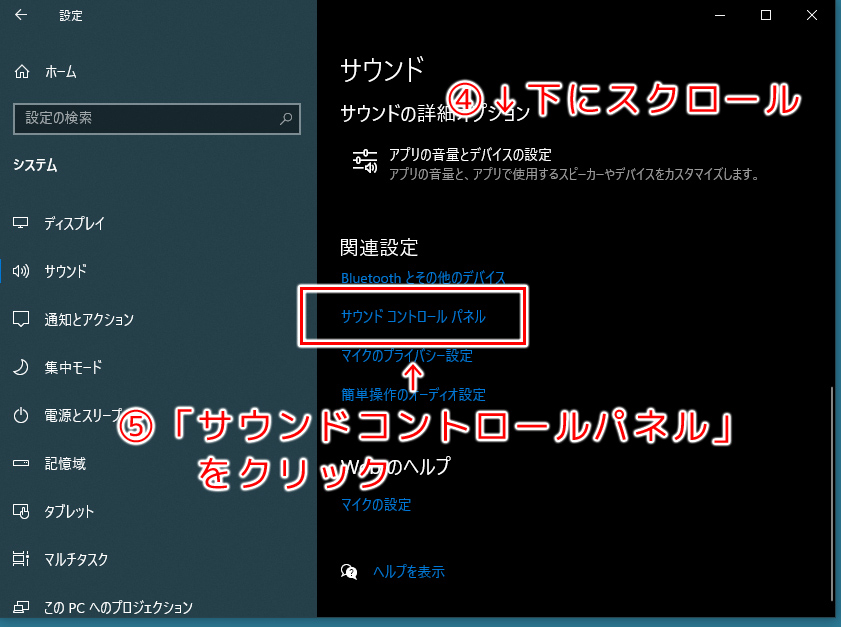 次に、画面を下までスクロールして「サウンドコントロールパネル」をクリックします。